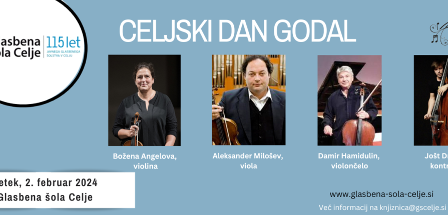 V petek, 2. februarja, bomo v Glasbeni šoli Celje gostili izjemne glasbenike, ki bodo vodili mojstrske delavnice.