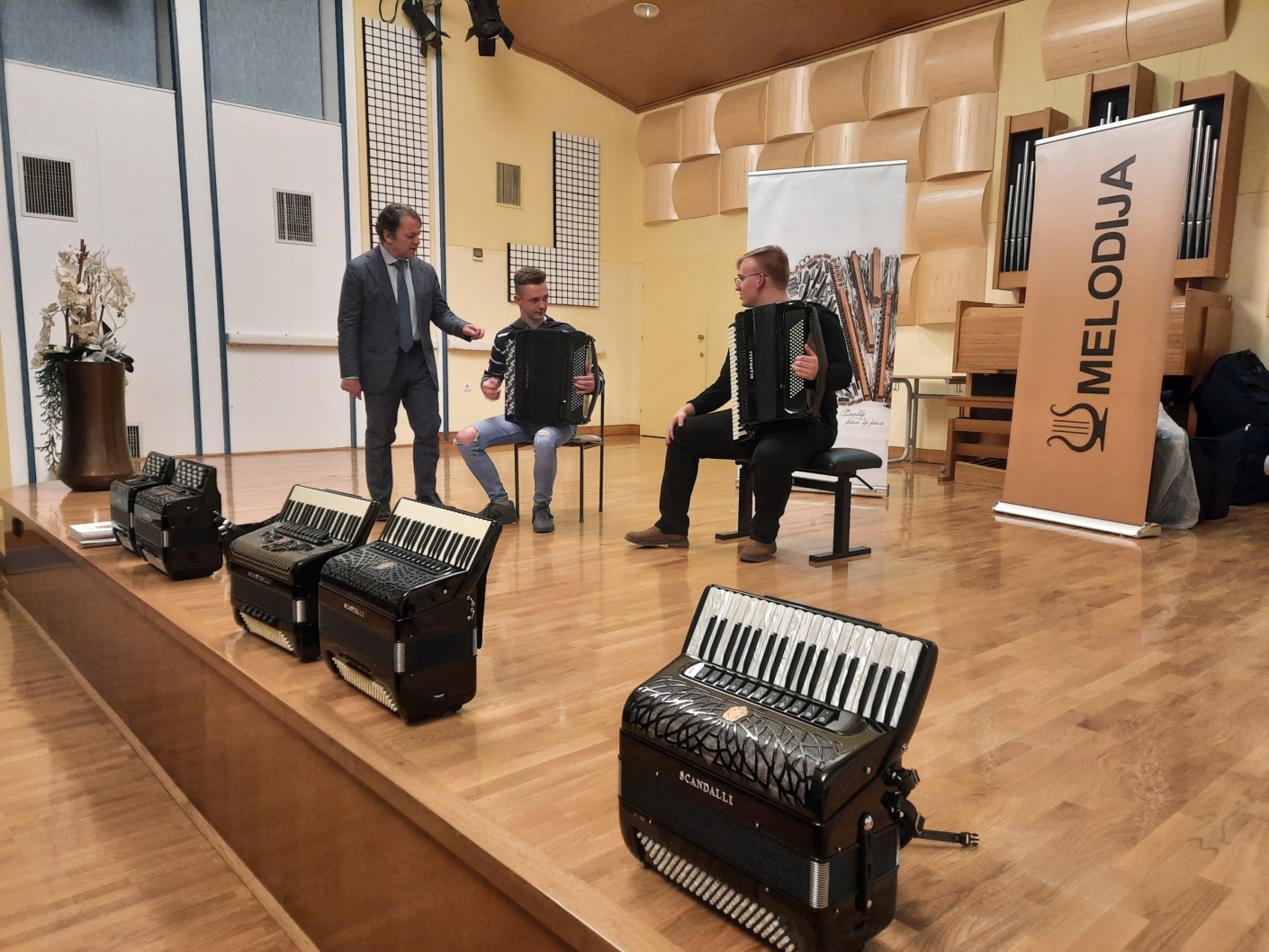 V popoldanskih urah je sledila predstavitev harmonik Scandalli s strani harmonikarja in direktorja podjetja Mirca Patarinija, sicer tudi predsednika Mednarodnega združenja harmonikarjev (Confederation Internationale des Accordeonistes). Predstavil je bogato zgodovino italijanskih izdelovalcev harmonik in široko paleto modelov podjetja Scandalli. Vsi prisotni so imeli možnost preizkusa številnih inštrumentov.