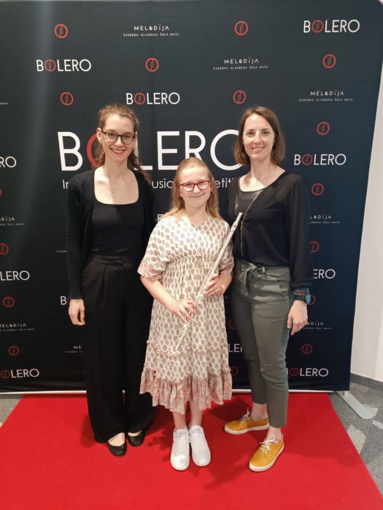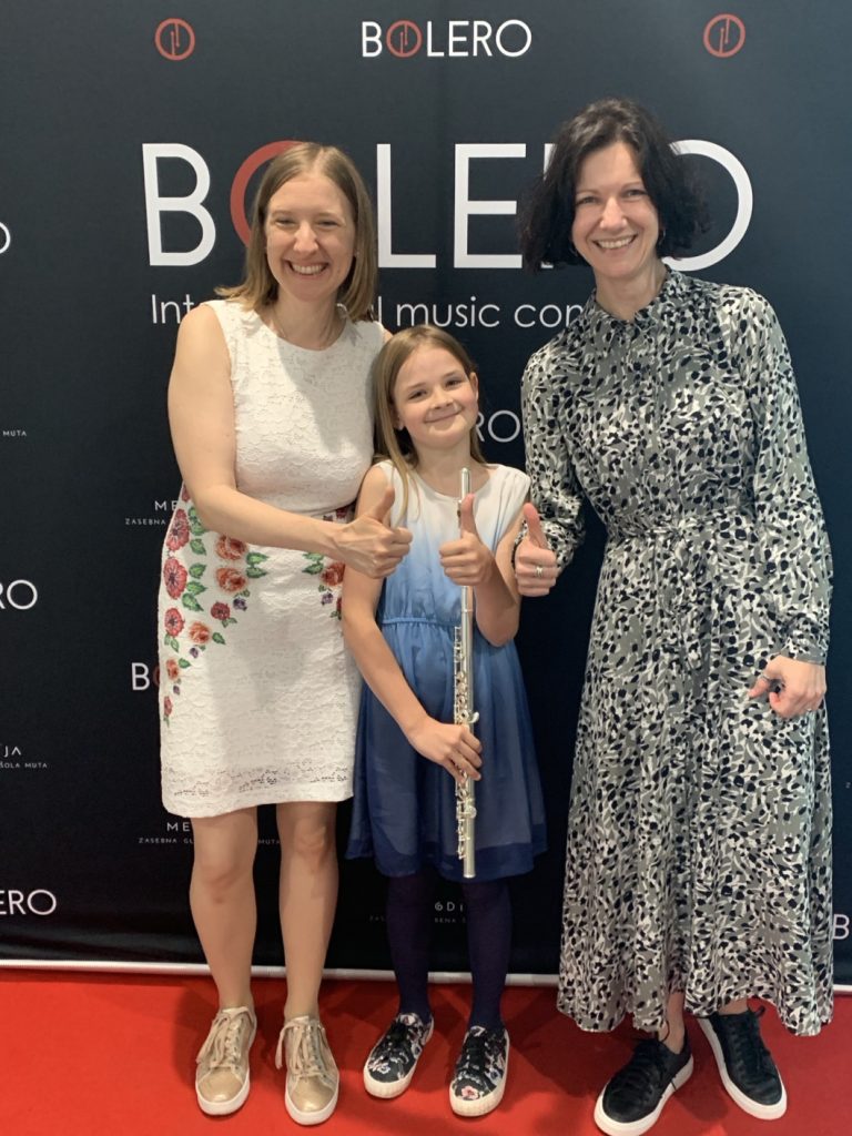 Mednarodno glasbeno tekmovanje BOLERO od 27. 6. do 2. 6. poteka tudi za pihala. Na njem so se že zelo uspešno predstavile flavtistke Glasbene šole Celje. V predkategoriji so v konkurenci 25-ih tekmovalcev tekmovale tri flavtistke naše šole. KAIRA GLUSHCHUK je prejela zlato plaketo s pohvalo, njena mentorica je Mirjana Brežnik, korepetitorka Tamara Povh. JULIJA JONAK OŽIR je ravno tako prejela zlato plaketo s pohvalo, njena mentorica je Tina Ostruh, korepetitor Davorin Dolinšek. Zlato plaketo je prejela tudi AJDA ŠALEJ, njena mentorica je Urška Hrovat Šket, korepetitorka Simona Moškotevc Guzej. V 1. kategoriji je v veliki konkurenci več kot 50-ih tekmovalk, tekmovalo 7 naših deklet, in vse so se zelo izkazale. TAJDA JAKLEVIČ je prejela zlato plaketo s pohvalo in II. nagrado, MIŠA CIGALE in VESPER VIDEC obe zlato plaketo s pohvalo. Mentorica vseh treh je Mirjana Brežnik, korepetitorka Tamara Povh. PATRICIJA REZAR je prejela zlato plaketo, njena mentorica je Tina Blazinšek, korepetitorka Ana Semič Bursać. MIA PETEK je v isti kategoriji prejela srebrno plaketo. Njena mentorica je Tina Ostruh, korepetitorka Ana Semič Bursać. JERNEJA LIPOVŠEK si je priigrala bronasto plaketo, njena mentorica je Metka Lipovšek, korepetitor Davorin Dolinšek. Bronasto plaketo pa je ravno tako usvojila TINKARA VERBIČ, mentorica Urška Hrovat Šket, korepetitorka Simona Moškotevc Guzej. V 2. kategoriji je imela Glasbena šola Celje le eno predstavnico, TAJDO ZORKO, ki je prejela srebrno plaketo. Njena mentorica je Urška Hrovat Šket, korepetitorka Tjaša Šketako Razpotnik. Med tekmovalci v 3. kategoriji pa sta tekmovali 2 flavtistki naše šole. LARISSA TAUSES je prejela srebrno plaketo, mentorica Metka Lipovšek, ANA MARINŠEK pa Bronasto plaketo, mentorica Tina Ostruh. Korepetitor obeh je Davorin Dolinšek.