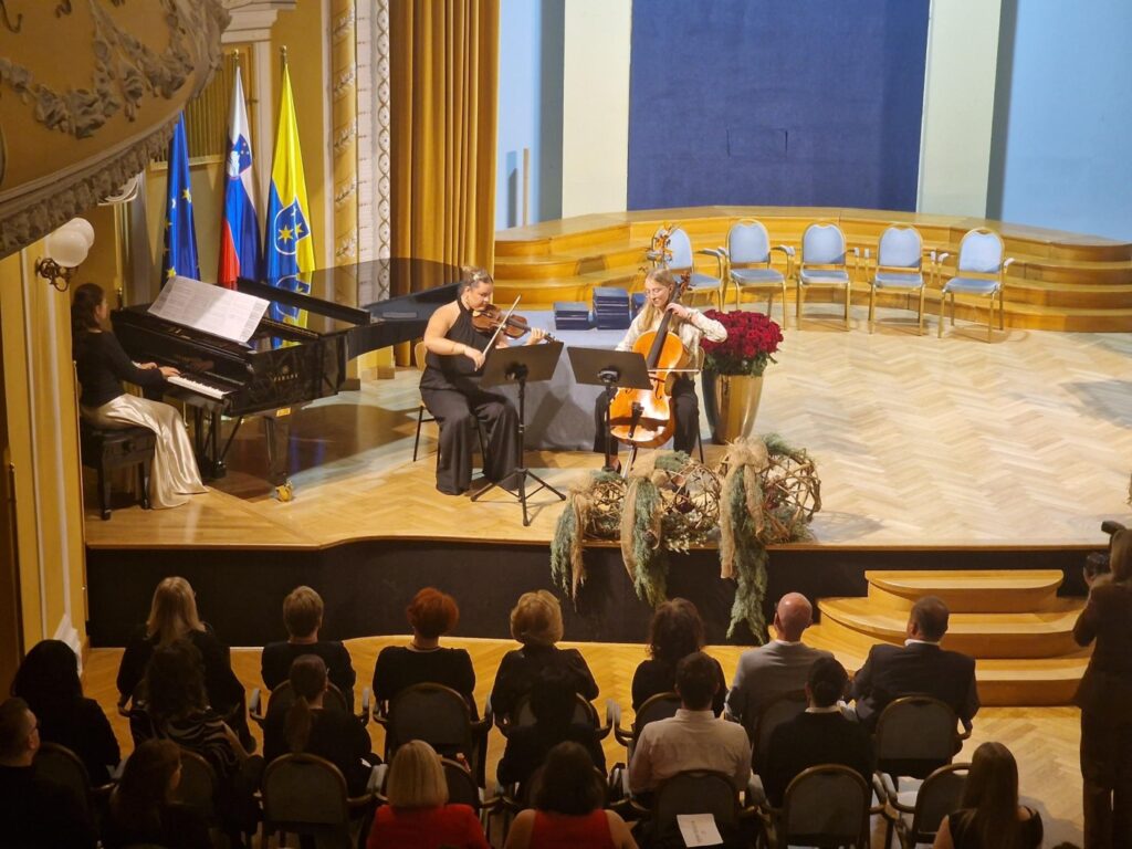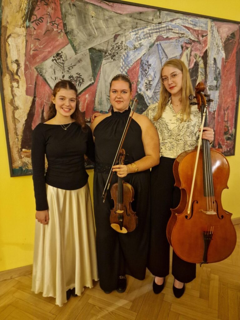Pianistka Klea Testaniere, violinistka Mia Jenček in violončelistka Livija Križnar, ki delujejo pod mentorstvom izr. prof. Slavka Kovačiča, so izvedle skrbno izbran program, ki je obsegal dela slovenskega, francoskega in angleškega skladatelja. V njihovi interpretaciji smo lahko začutili zrelost izraza, občuteno muzikalnost in predanost umetnosti.