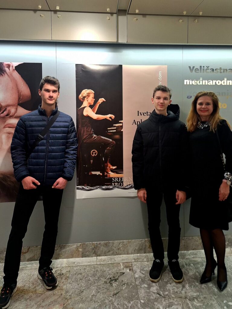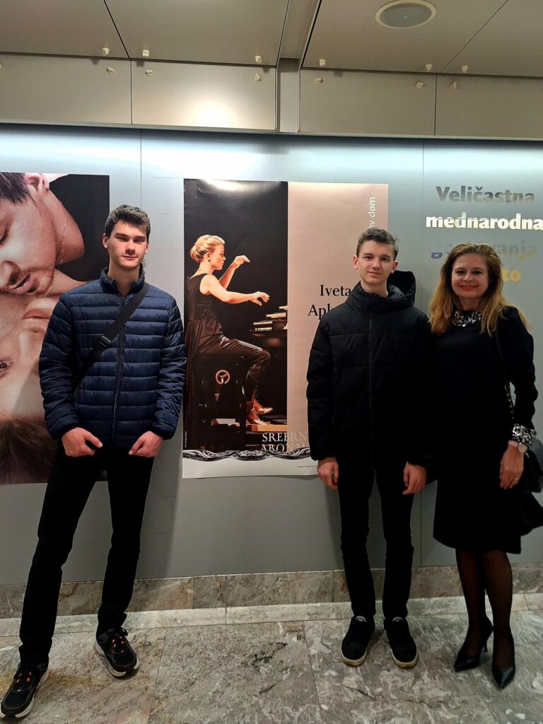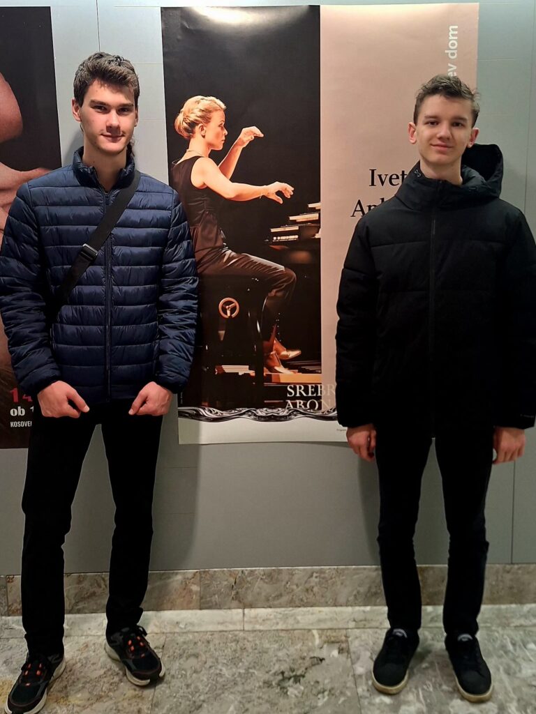 Na fotografijah so: profosorica Katarina Arlič Leban in dijaka umetniške gimnazije glasbene smeri, ki jo Glasbena šola Celje izvaja skupaj s I. gimnazijo v Celju: Mihael Žlender in Aljaž Čepin.