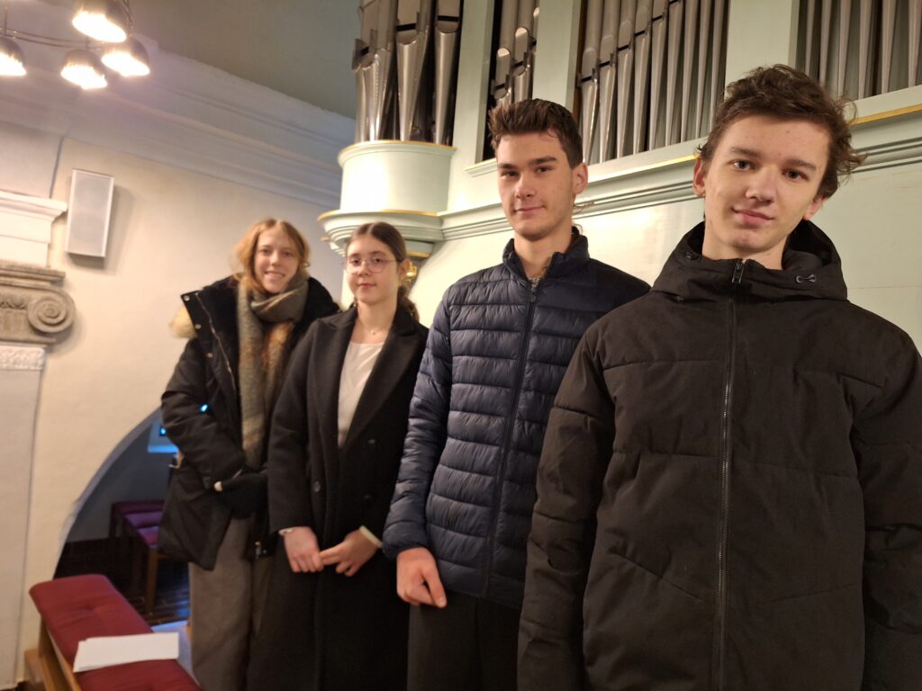 Orglavci Gaja Potočnik, Aljaž Čepin in Mihael Žlender ter sopranistka Elizabeta Tadina, učenci naše šole in dijaki umetniške gimnazije glasbene smeri, ki jo izvajamo skupaj s I. gimnazijo v Celju, so v župnijski cerkvi sv. Jurija v Šentjurju, 25. januarja, pri nedeljski sv. maši, izvedli Orgelsko mašo. Na sporedu so bila dela E. Gigouta, F. Liszta, D. Zipolija in G. F. Händla. Poleg koncertnega programa so izvedli tudi liturgične glasbene dele maše. Izvrstno so se odrezali in navdušili polno cerkev poslušalcev. Mentorici mladih glasbenikov sta Mojca Hladnik in Katarina Arlič Leban. Za uspeh jim iskreno čestitamo in z veseljem pričakujemo njihov naslednji nastop.🎹🎼
