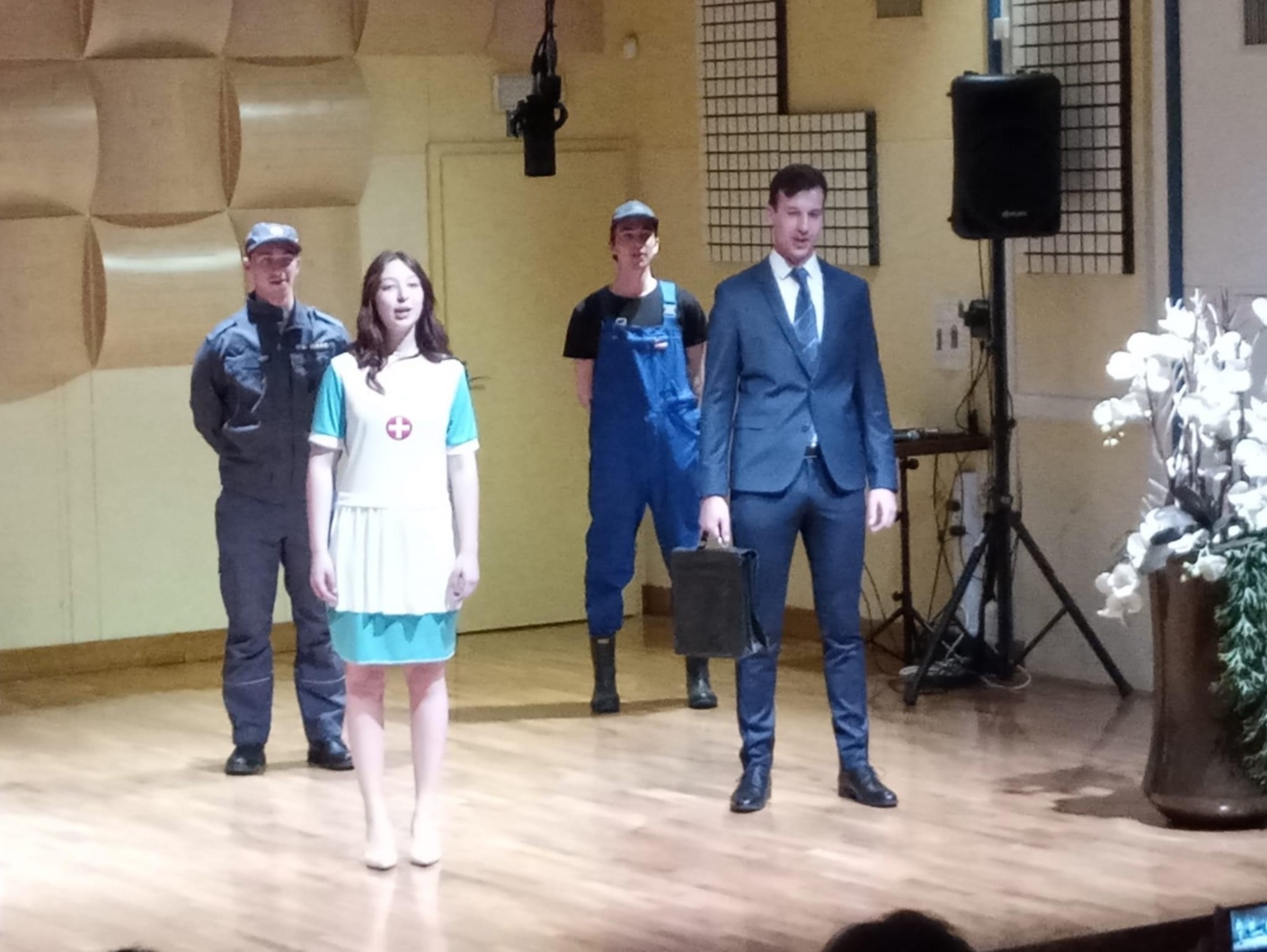 S pesmijo skozi čas so nas učenci in dijaki oddelka za petje in NGL popeljali skozi zgodovinska obdobja od renesanse pa vse do skladateljev današnjega časa. Z igro luči so pevci pričarali pravi mistični pridih in nas navduševali skozi program vse do konca, ko so večer zaokrožili z nastopom vokalne skupine.
