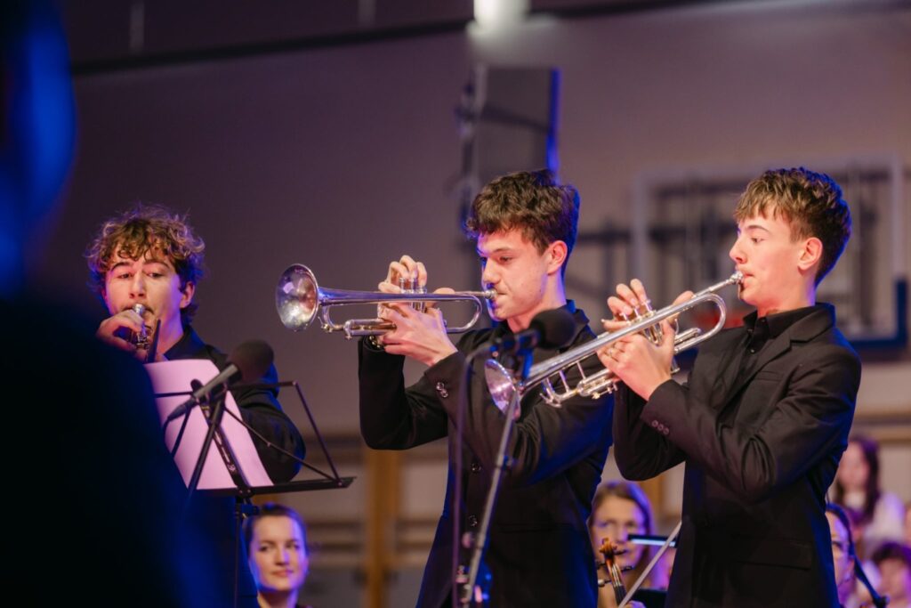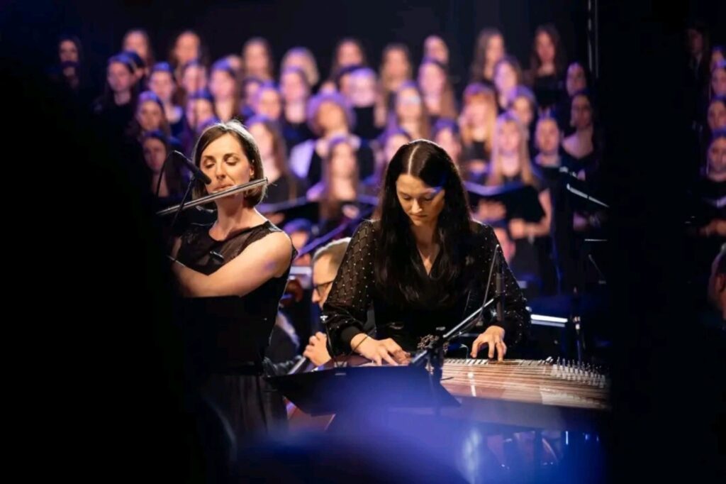 Poseben umetniški pečat sta koncertu dodali tudi instrumentalni solistki in pedagoginji Tina Ostruh (flavta) ter Irena Anžič (citre). V Kantati za mir sta z avtorsko improvizacijo na citrah ter z zvočno sugestivnim glissandom na flavti soustvarili izrazito doživeto in zvočno barvito glasbeno podobo. Na tolkalih je z orkestrom zaigral tudi učitelj Martin Rošer.