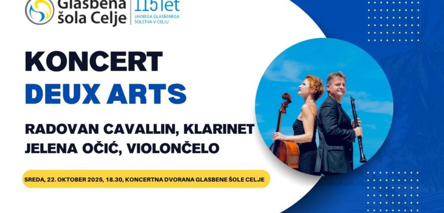 Vabljeni na koncert predavateljev, ki nastopata pod umetniškim imenom Deux Arts, danes, 22. 10., ob 18.30 v Koncertno dvorano Glasbene šole Celje.