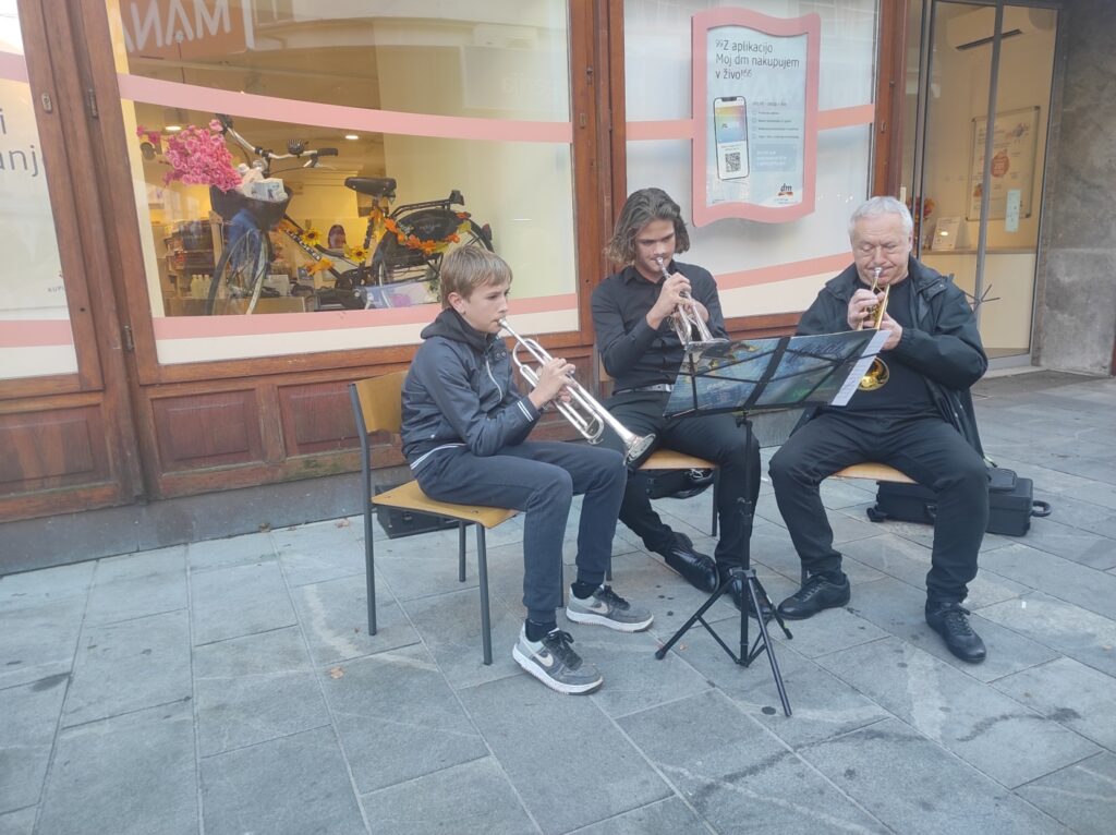Torkovi popoldnevi v celjskem mestnem jedru so že nekaj mesecev še bolj pestri. Na pobudo Zavoda Celeia se v okviru sklopa dogajanj “V mestu diši po jeseni!” predstavljajo najrazličnejše skupine s Celjskega. Glasbeno šolo Celje in I. gimnazijo v Celju sta z živahnim programom predstavljali komorni zasedbi pod mentorstvom prof. Jureta Krajnca (trobentar Nejc Zakonjšek ter evfonista Domen Lampret in Tobija Smrtnik) in prof. Mirana Majcna (trobentarja Ambrož Krajcar in Filip Leban). Udarni zvoki medeninastih glasbil so pritegnili lepo število obiskovalcev starega mestnega jedra in gotovo pustili lep vtis pri vseh mimoidočih.